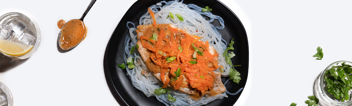 Once fully cooked, transfer the noodles to your bowl and layer with vegetables. Then, gently place your tilapia fillets on top of the vegetables and add the remaining sauce from the skillet. Garnish with fresh cilantro.