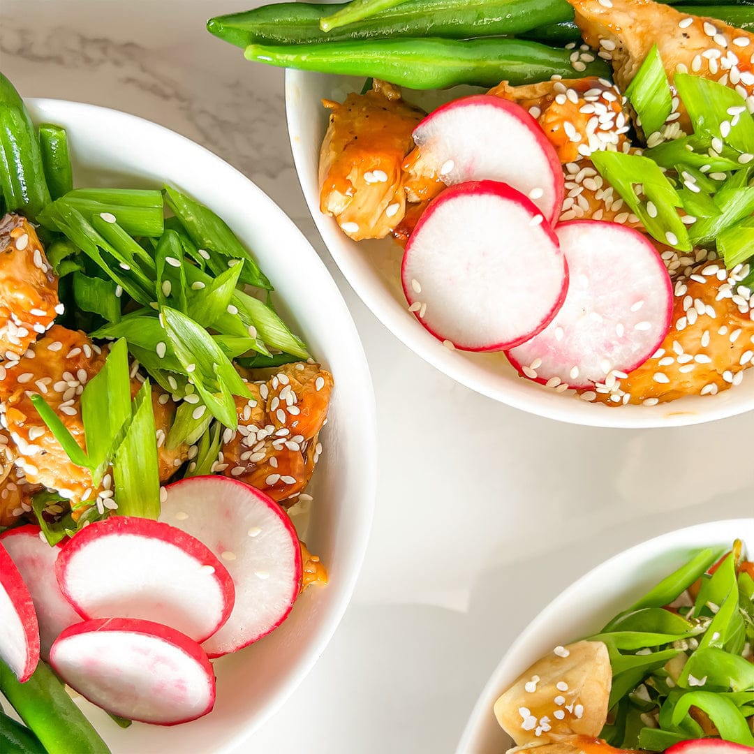 Tender chicken breast strips paired with a soy-free orange sauce made with coconut aminos, ginger, and hints of garlic.